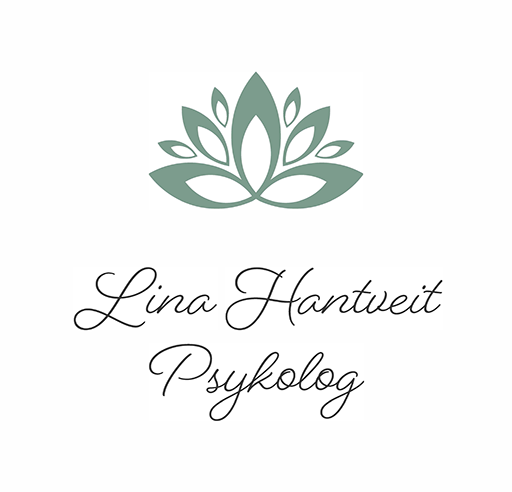 Logo med en grå blomst med teksten Lina Hantveit Psykolog under Hvit bakgrunn